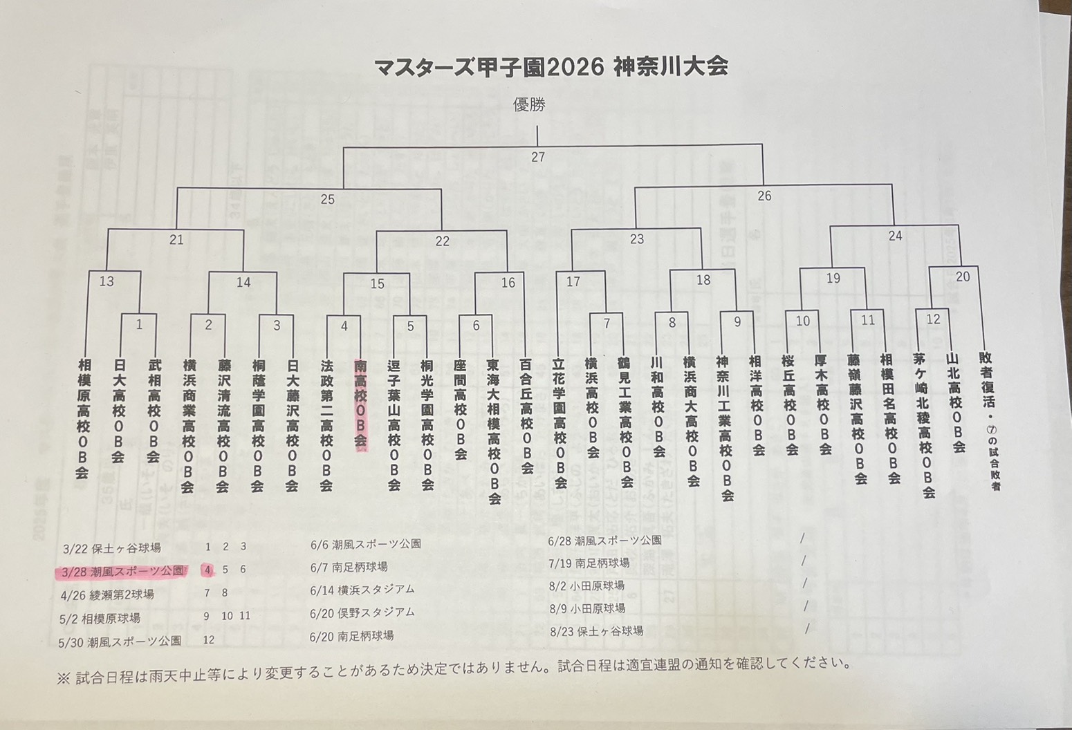 南高OB会は神奈川県予選に毎年参加し、甲子園出場を目指して活動しています。